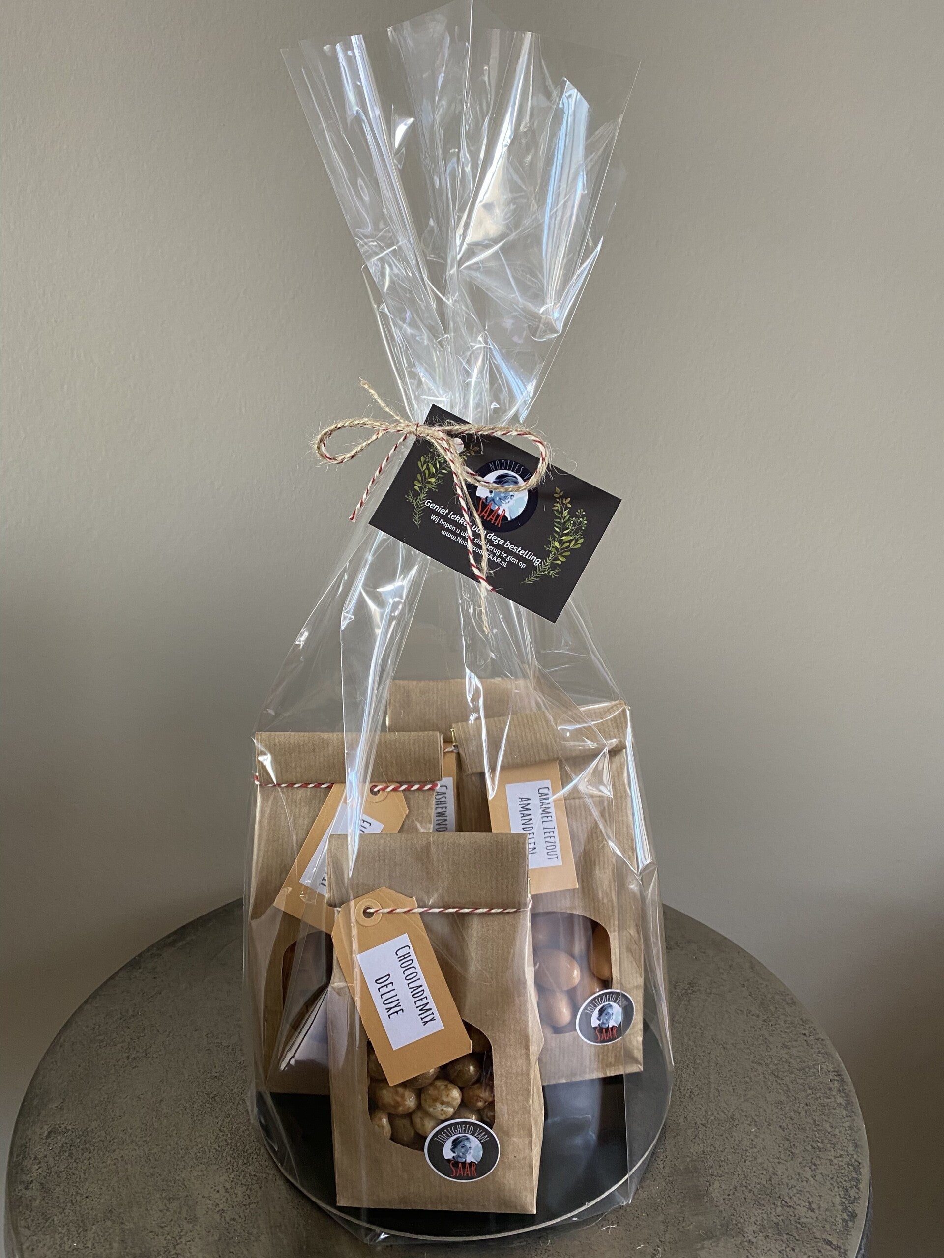 Cookie fudge rotsjes melk, pittige cashewnoten, caramel zeezout amandelen en fudge rum rozijnen