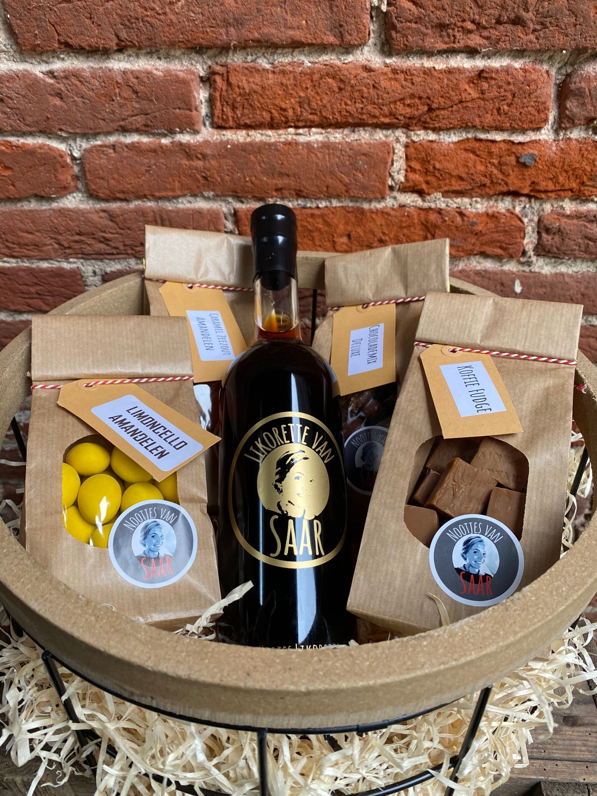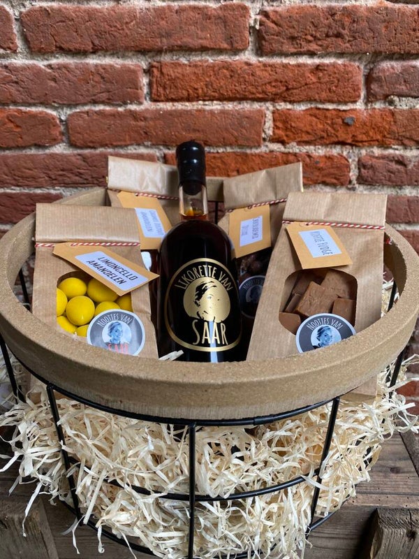 likorette van Saar, limoncello amandelen, koffie fudge, caramel zeezout amandelen en chocolade mix deluxe
